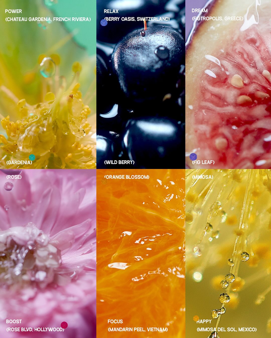 RELAX (Berry Oasis) brings the volume down. It leans floral like wild berry, bergamot, and osmanthus, smells fresh like farm picked berries but not in a sweet way. More grounded than sleepy. Works best when the day’s mostly done and you’re not rushing anywhere. Living room, bath, low light, soft background noise. That kind of moment.