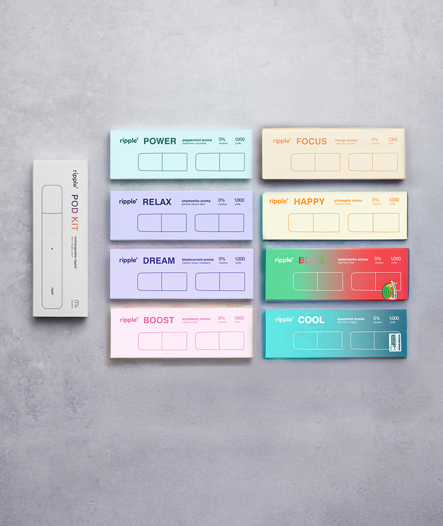 You have every ripple⁺ aroma available at the tip of your fingers. Rechargeable device. 8 aromas. 8,000 puffs. Non-stop enjoyment. This experience will leave you in a cloudy state, but you’ll be experiencing the ripple⁺ world in full effect.