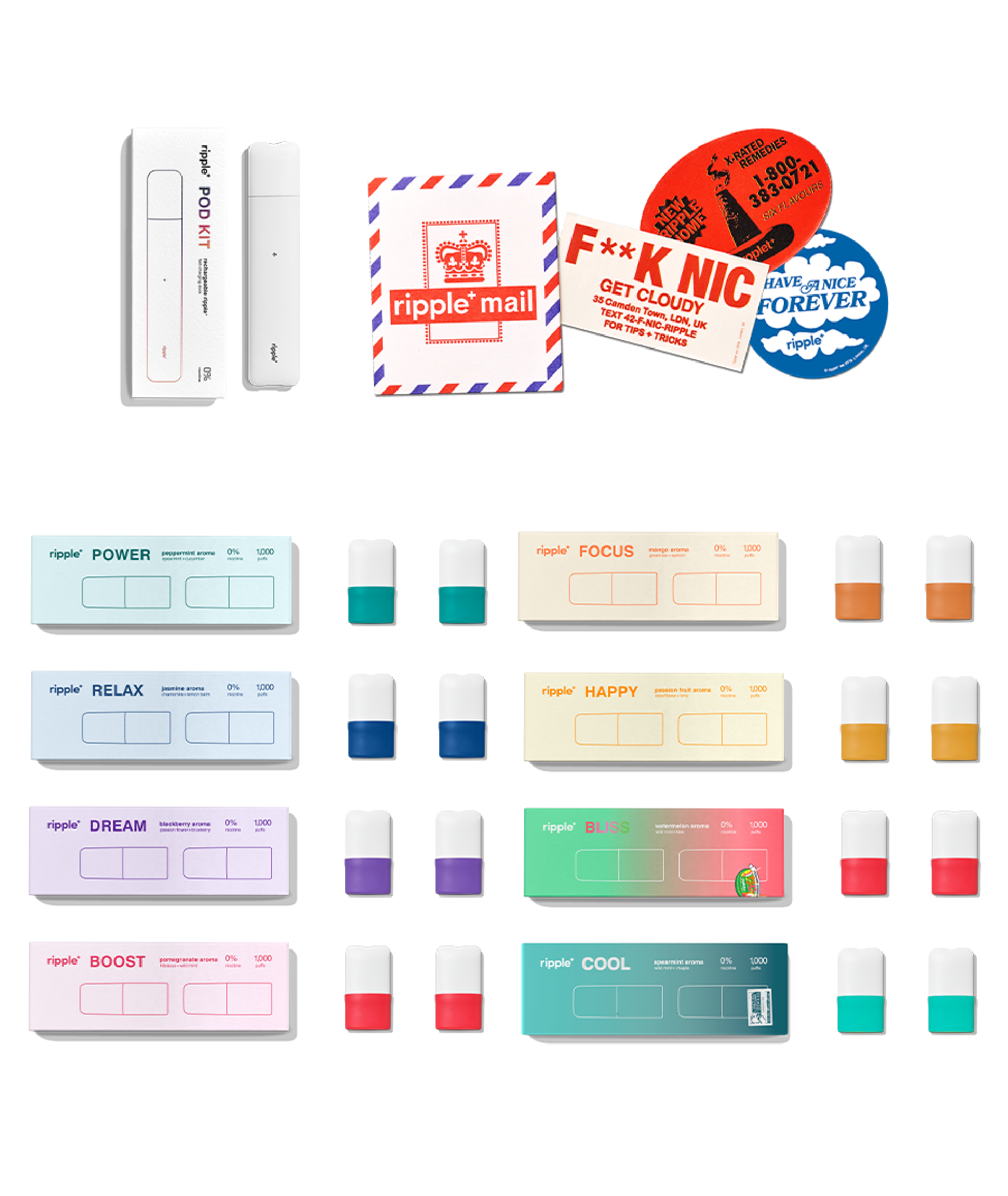 Each ripple⁺ pod will deliver 500 puffs (each pack contains 2x pods), meaning you get multiple days & weeks of plant-powered goodness. You know where to find us when you need a new batch!
