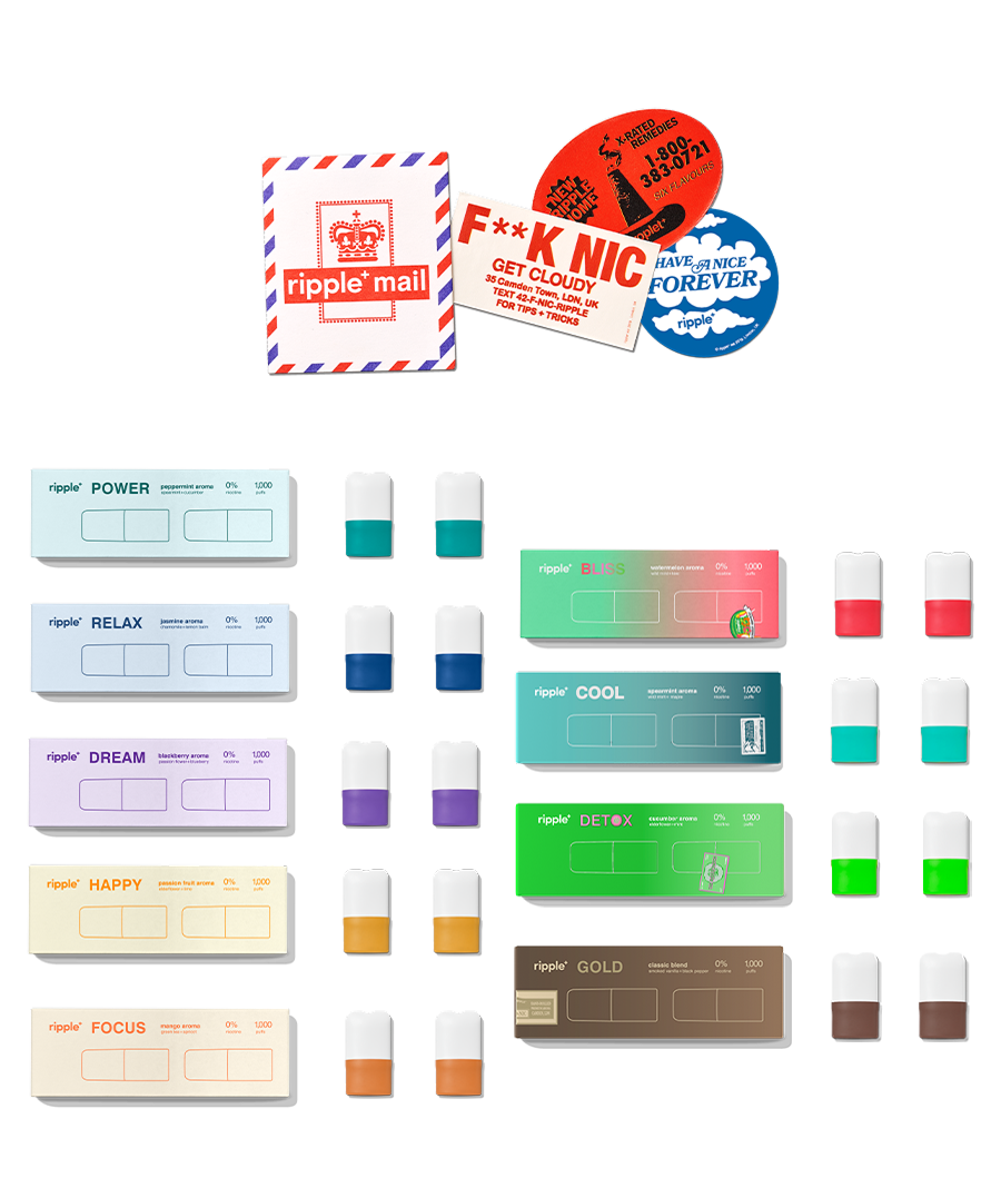 You have every ripple⁺ aroma available at the tip of your fingers. 9 aromas. 9,000 puffs. Non-stop enjoyment. This experience will leave you in a cloudy state, but you’ll be experiencing the ripple⁺ world in full effect.