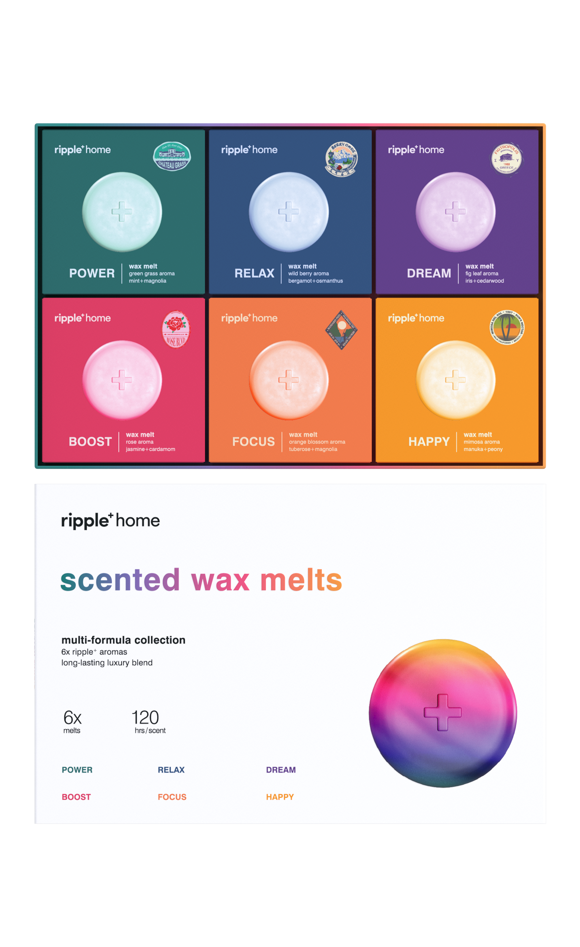 Our scented wax melts are sold separately in a pack of 4, or come in a discovery set as a pack of 6. You can also bundle up with the warmer & discovery set for the full experience.